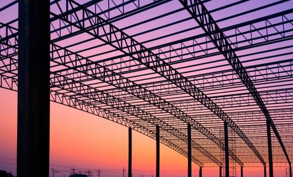 A mezzanine floor typically consists of steel decks supported by joists, which are framed into mezzanine beams. The main mezzanine beams usually run across the building width beneath the primary rafters, while joists are aligned parallel to the building length. The top flange of the joists fits directly below the top flange of the mezzanine beam, ensuring structural integrity.